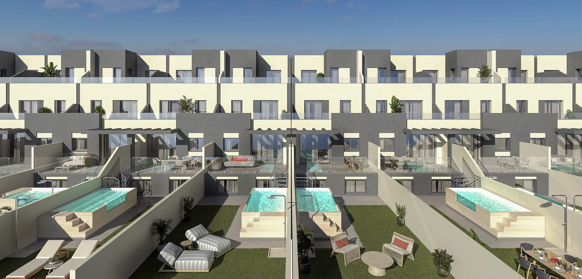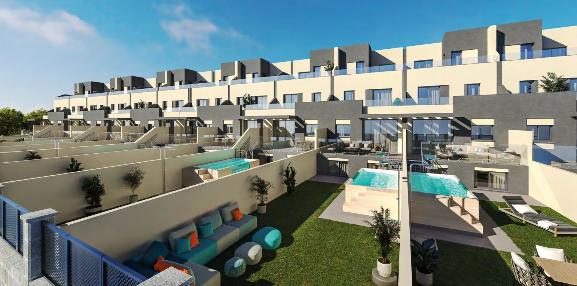 Marinsa Brisa es una exclusiva promoción de obra nueva en Torrox Costa, compuesta por únicamente 12 viviendas adosadas con jardín, piscina individual y plaza de aparcamiento incluida. Ubicada a solo unos metros de la playa del Mediterráneo, esta promoción ofrece un estilo de vida excepcional en una de las zonas más demandadas de la Costa del Sol Oriental.